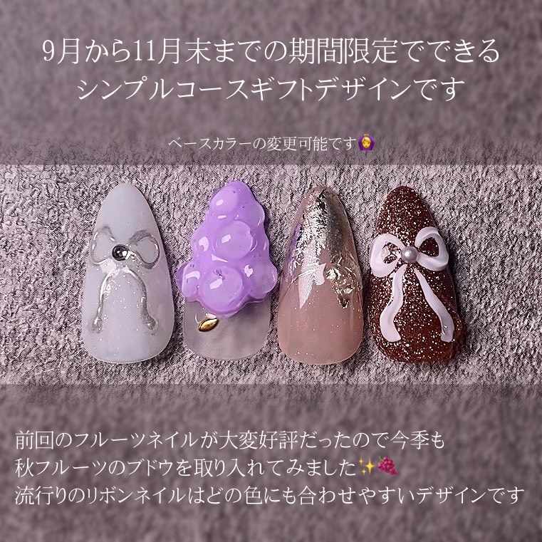 9月から11月までの期間限定でできるシンプルコースギフトデザインが変わりましたのでそちらのご案内です♪