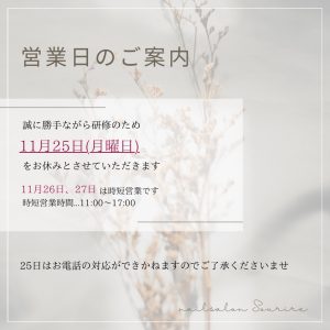 そして11月26日、27日は時短営業とさせていただきます