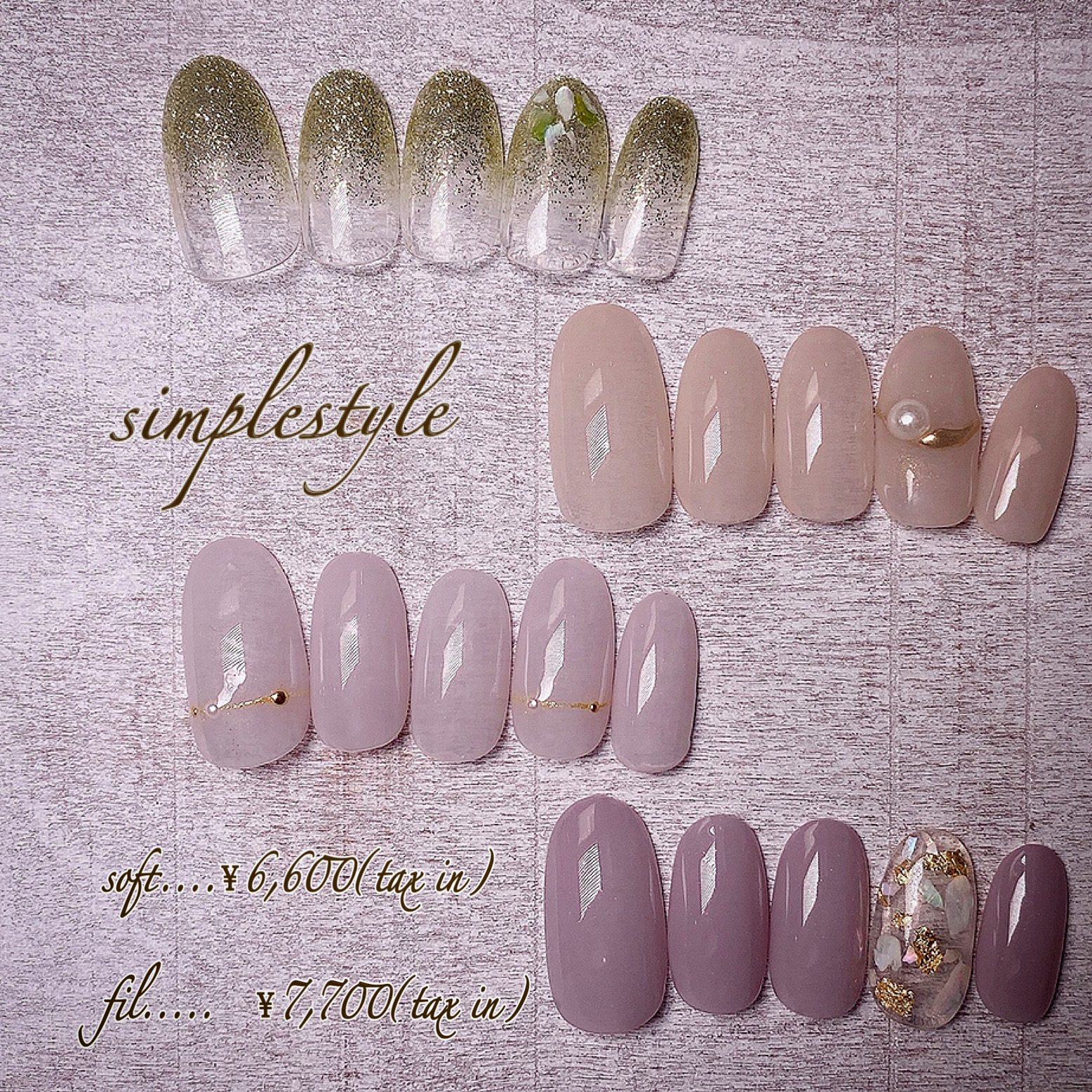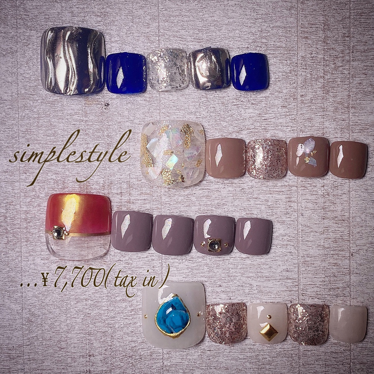 通常のシンプルコースでできるワンカラー、グラデーション、フレンチ、ラメグラデーションを追加するのも可能ですし、逆にパーツなどを減らすことも可能です!