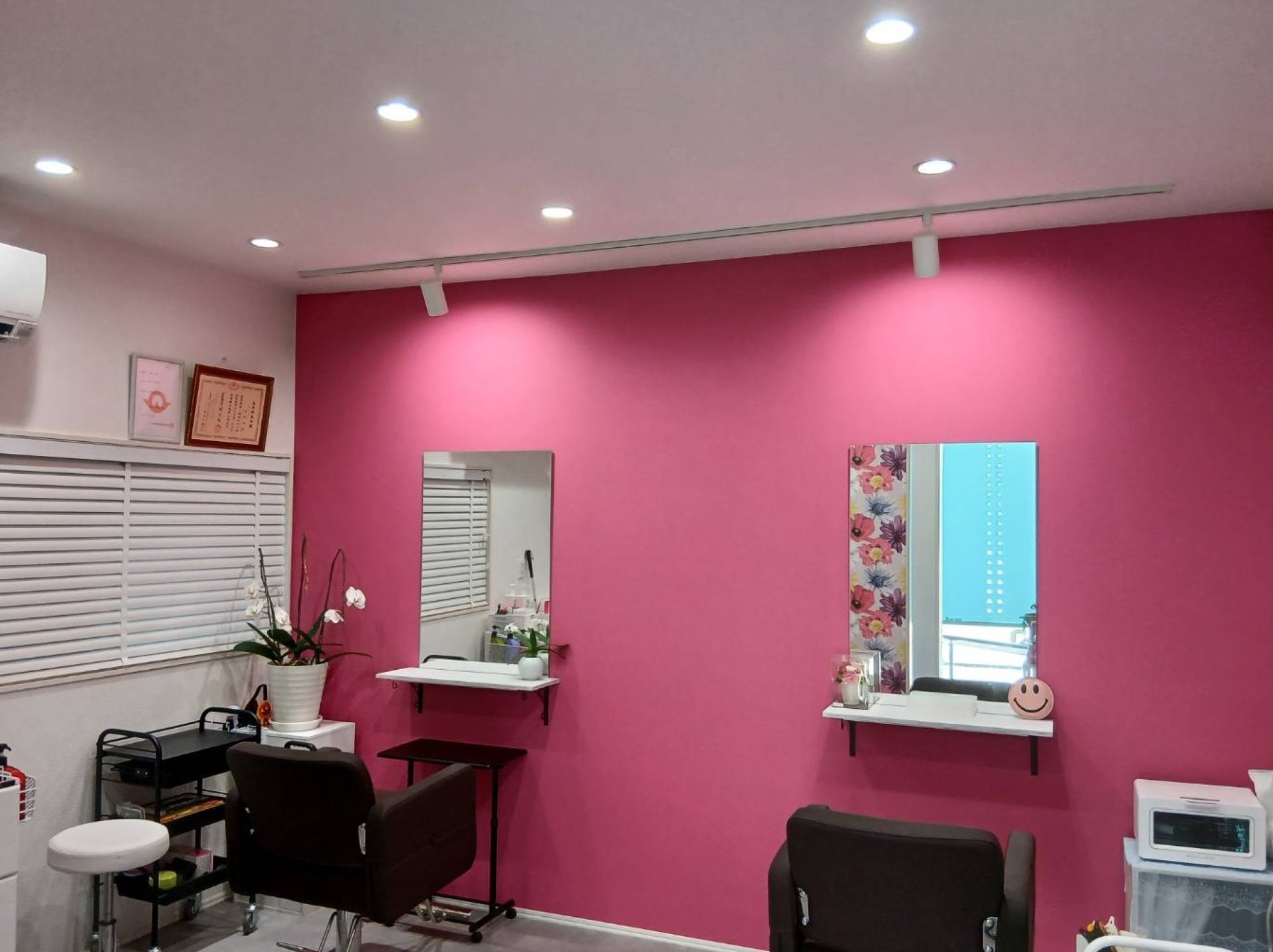 hair salon W は、一戸建ての1階を利用したプライベートサロンです。