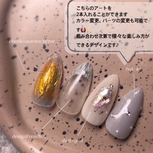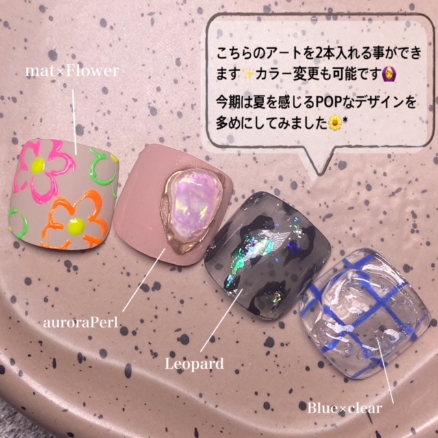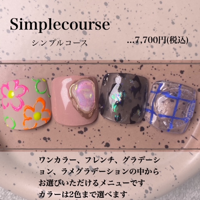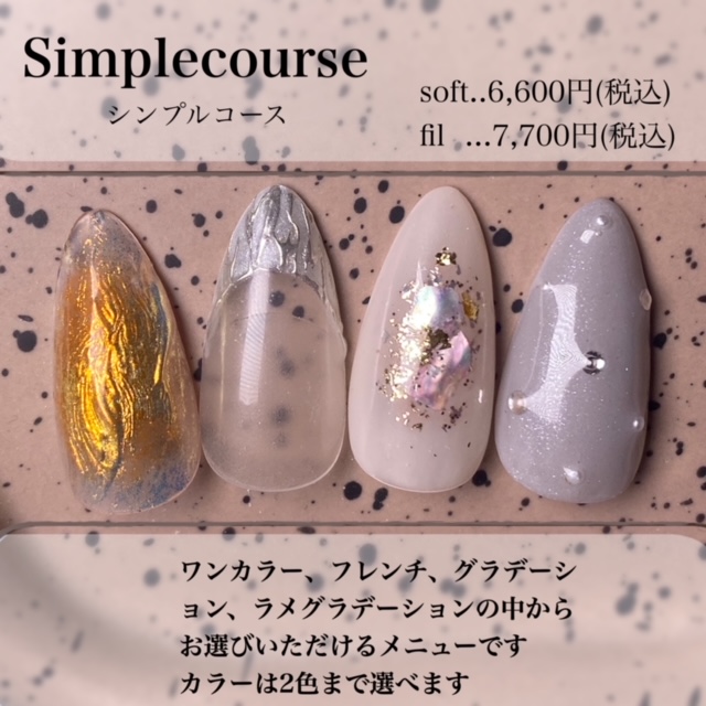 ワンカラー、フレンチなどができるシンプルコースに、無料で追加できる期間限定アートのデザインが変わりましたので、そちらのご案内です🌟